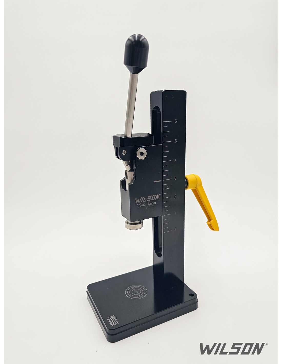 Der stabile Rahmen sorgt für sicheren Stand auf der Werkbank, während der vertikale Pressstempel mit Direkthebel eine gleichmäßige und fein dosierbare Kraftübertragung ermöglicht. Die Presse ist kompatibel mit Wilson Hand-Dies sowie gängigen Arbor-Zubehörteilen für Benchrest-Anwendungen.