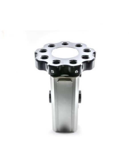 Il sistema della torretta sarà fissato utilizzando un perno di estrazione a punto ZERO sovradimensionato e personalizzato e la torretta verrà posizionata utilizzando un sistema di arresto a sfera sovradimensionato. Cambiare la posizione della torretta da un dies all'altro richiederà solo un giro di una maniglia a T (in dotazione). Quando si indicizza la torretta, la varianza della ripetibilità del sistema sarà inferiore a 0,0005″.