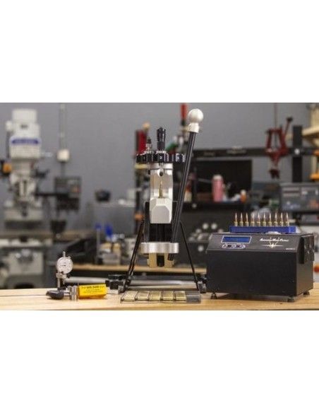 L'apertura nella pressa consentirà il dimensionamento e la sede di casse fino a 338 LM e accetterà stampi standard da 7/8 "e shellholder standard (preferiamo il Redding). La pressa PU essere utilizzata per la ricarica di classe Cheytac, ma potrebbe (a seconda della configurazione del die e della lunghezza del proiettile) richiedere di "raccogliere" il proiettile nel dado di dimensionamento e giù nel caso prima del dimensionamento.