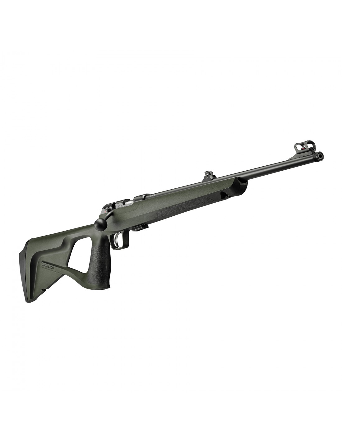 La CZ 457 Ergo, costruita sulla popolare piattaforma CZ 457, si distingue per l'adozione di una calciatura thumbhole, con poggiaguancia removibile, che abbina comfort a un peso davvero contenuto. La canna è rotomartellata a freddo per fornire una precisione superiore e presenta la filettatura in volata.