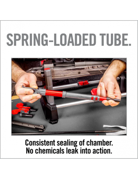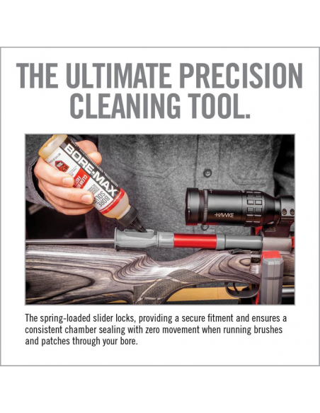 Der Smart-Fit Bore Guide ist ein einzigartiges, federbelastetes Reinigungswerkzeug für präzise und mühelose Reinigung von Schusswaffen. Der Federmechanismus des Schiebers arretiert sicher, sorgt für eine stabile Montage und garantiert eine gleichmäßige Kammerabdichtung ohne Bewegung. Das eloxierte Aluminiumrohr und die speziellen Spitzen gewährleisten eine präzise und schonende Befestigung an Zentralfeuergewehren im Kaliberbereich von .223 bis .375. Dieses innovative Reinigungsgerät ist das ideale Zubehör für optimale Sauberkeit und Leistung Ihrer Schusswaffe bei regelmäßiger Wartung.
