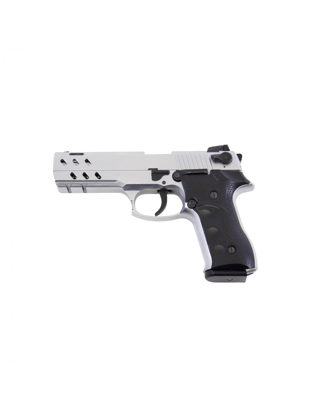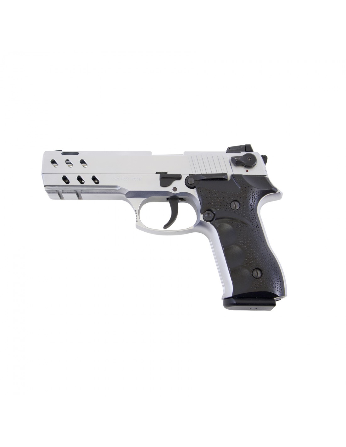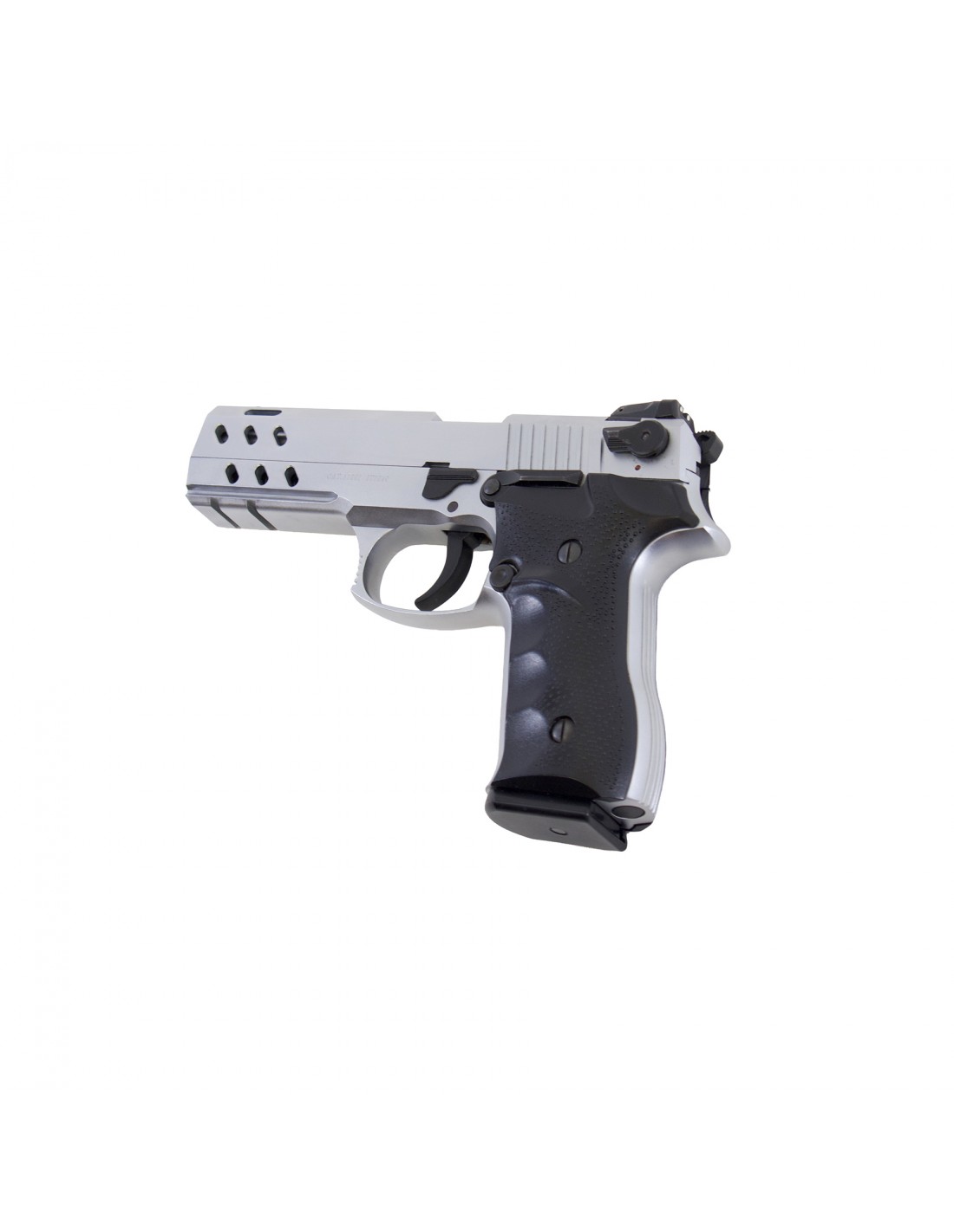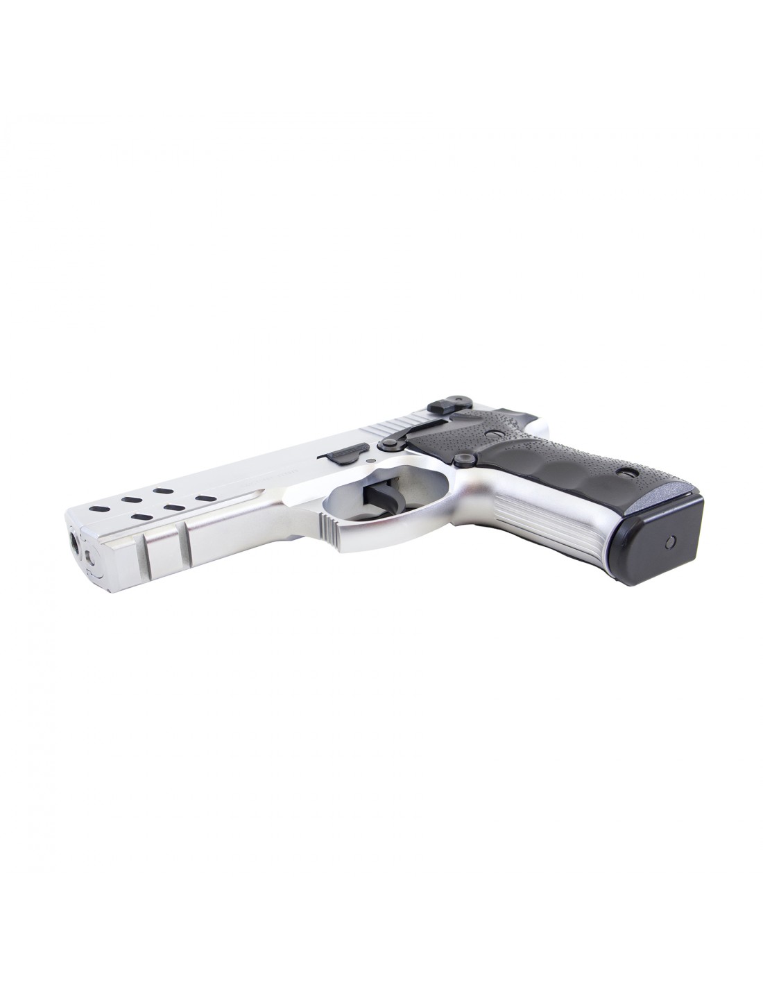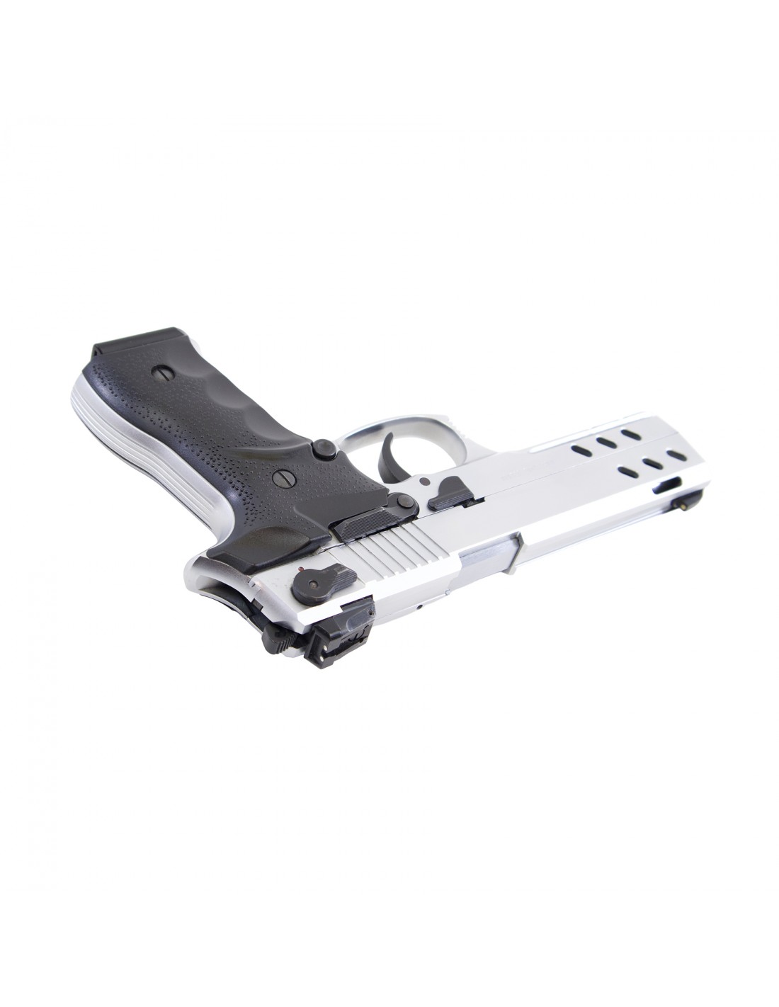 È corredata di caricatore con pad in alluminio ed è dotata di sicura abbatticane e rail per il montaggio della torcia o laser.