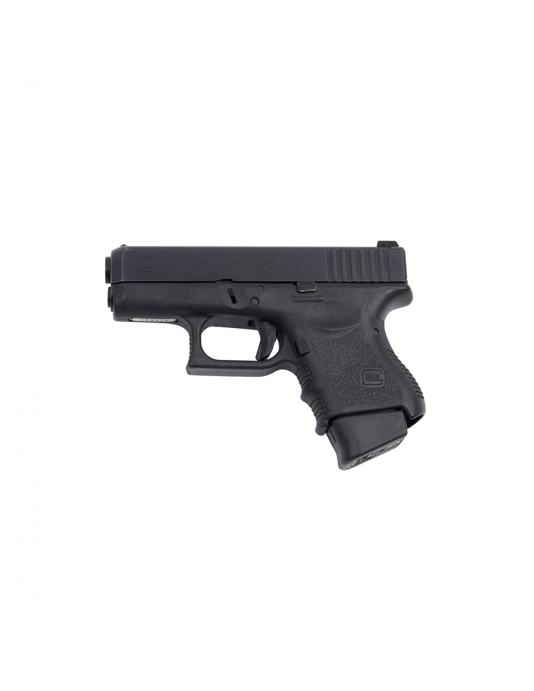 La Glock 26 è una pistola "subcompact" con canna ed impugnatura di dimensioni contenute, ma buona autonomia di fuoco grazie ai caricatori bifilari con pad maggiorato da 10 colpi. La pistola proposta è corredata di 2 caricatori con pad maggiorato.