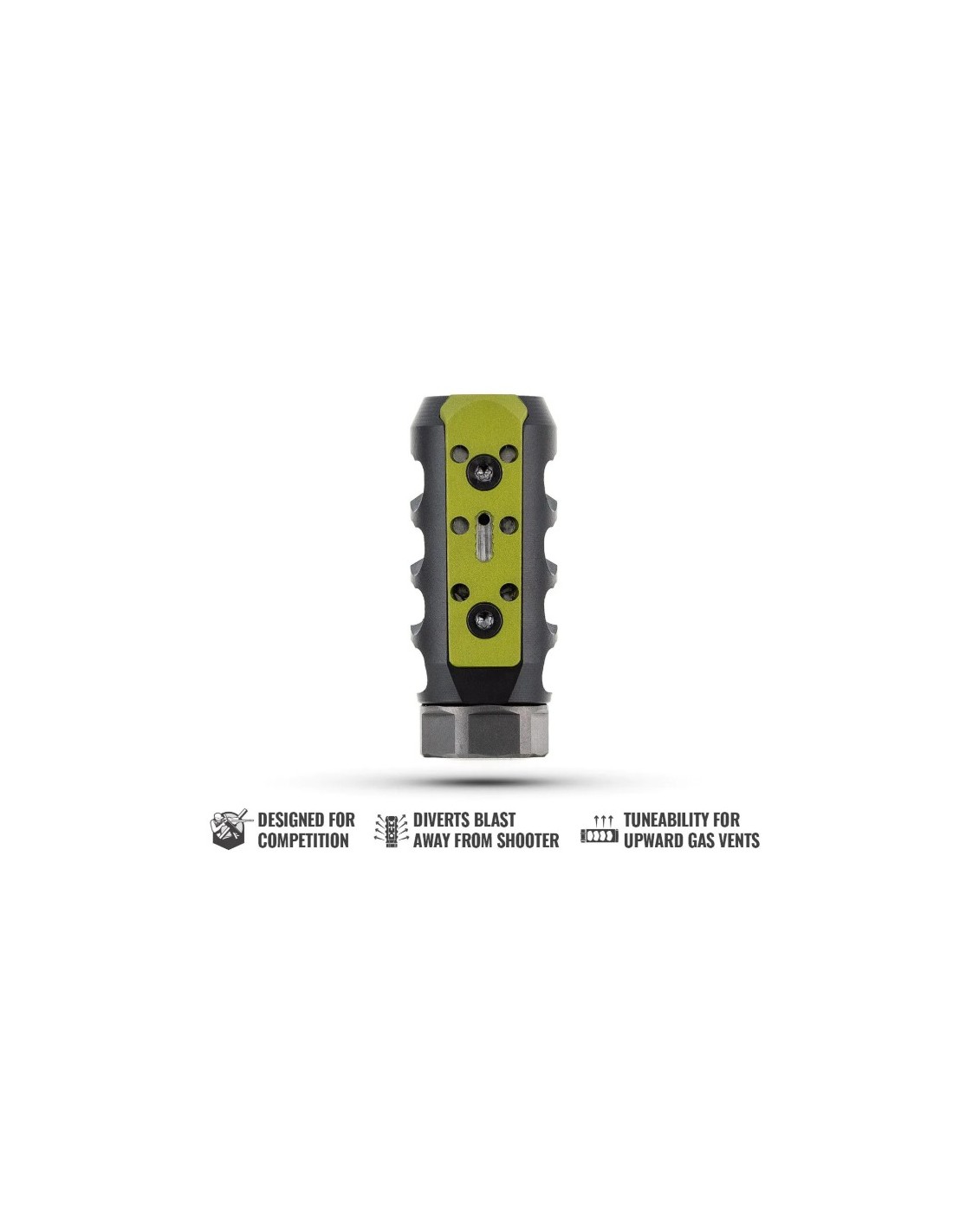 The MDT Comp Brake is a competition muzzle device engineered to redirect blast away from the shooter and reduce felt recoil by up to 67%.