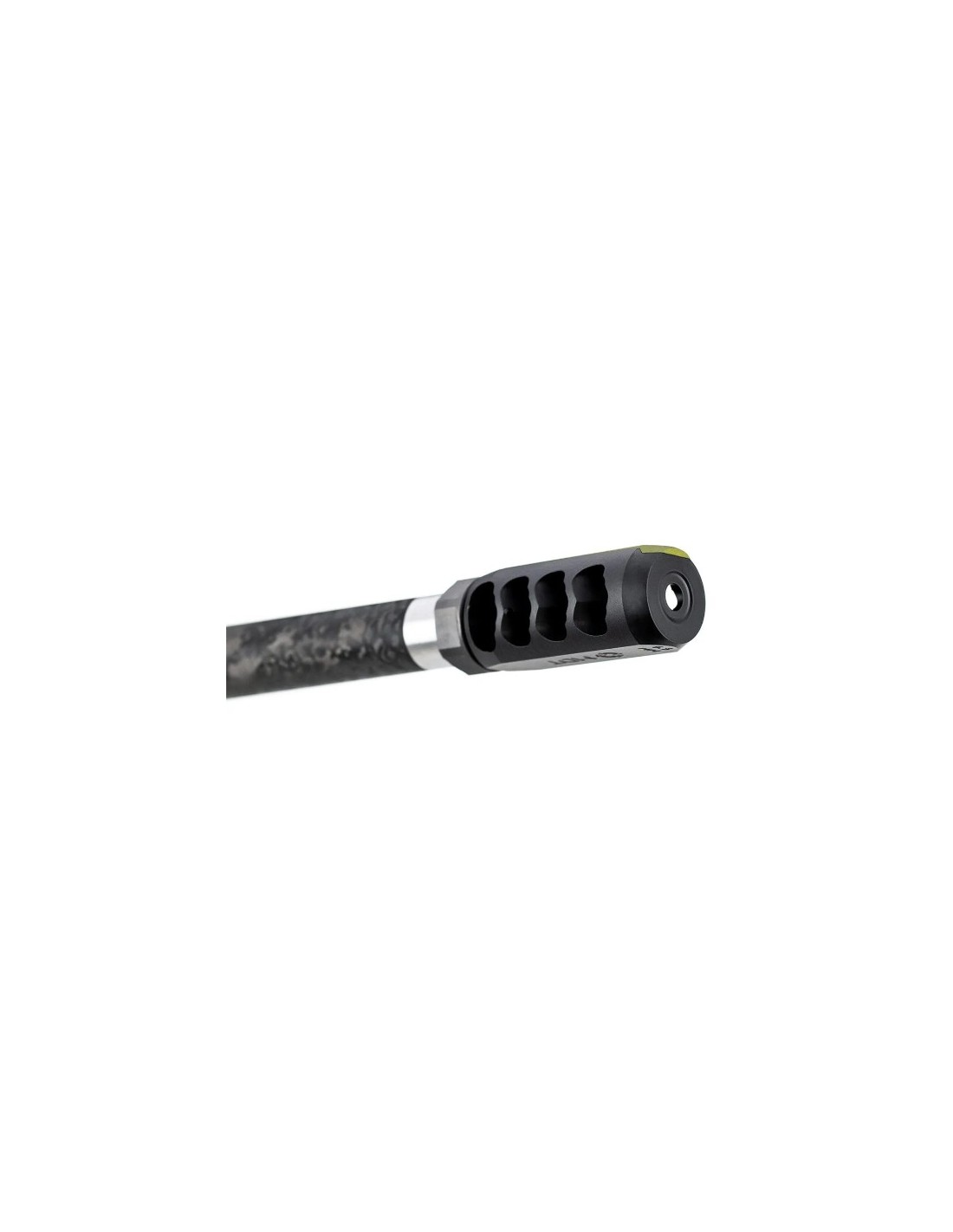 It features four baffles with serrated edges and staggered angles to induce turbulence and disperse energy. Its six top adjustable ports allow tuning of muzzle rise and enable visibility through the gas cloud to spot impact points.