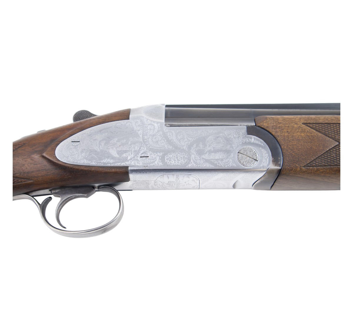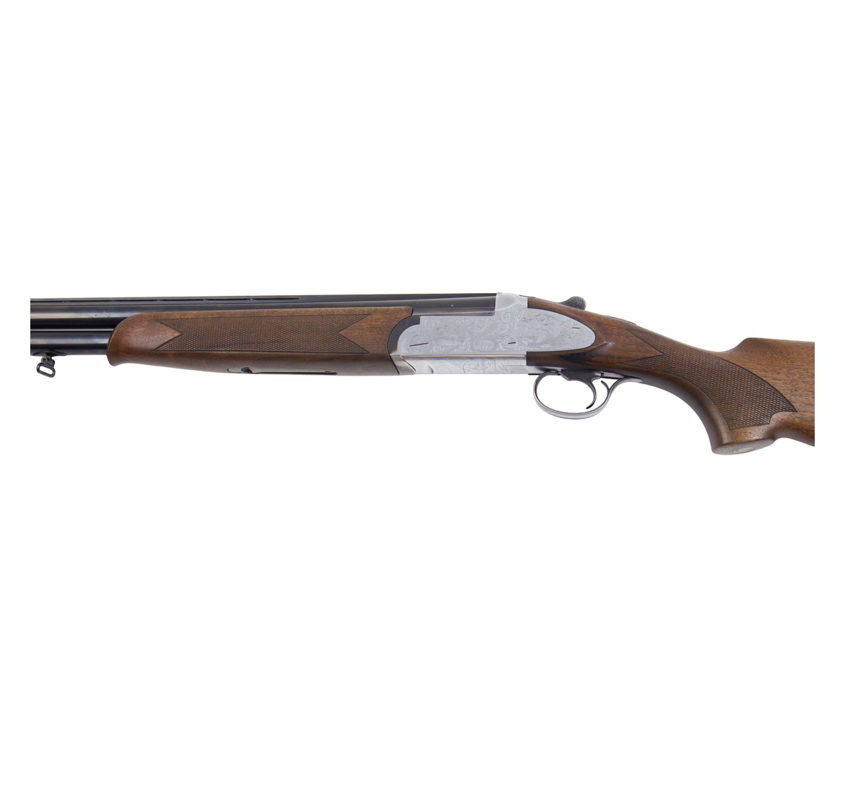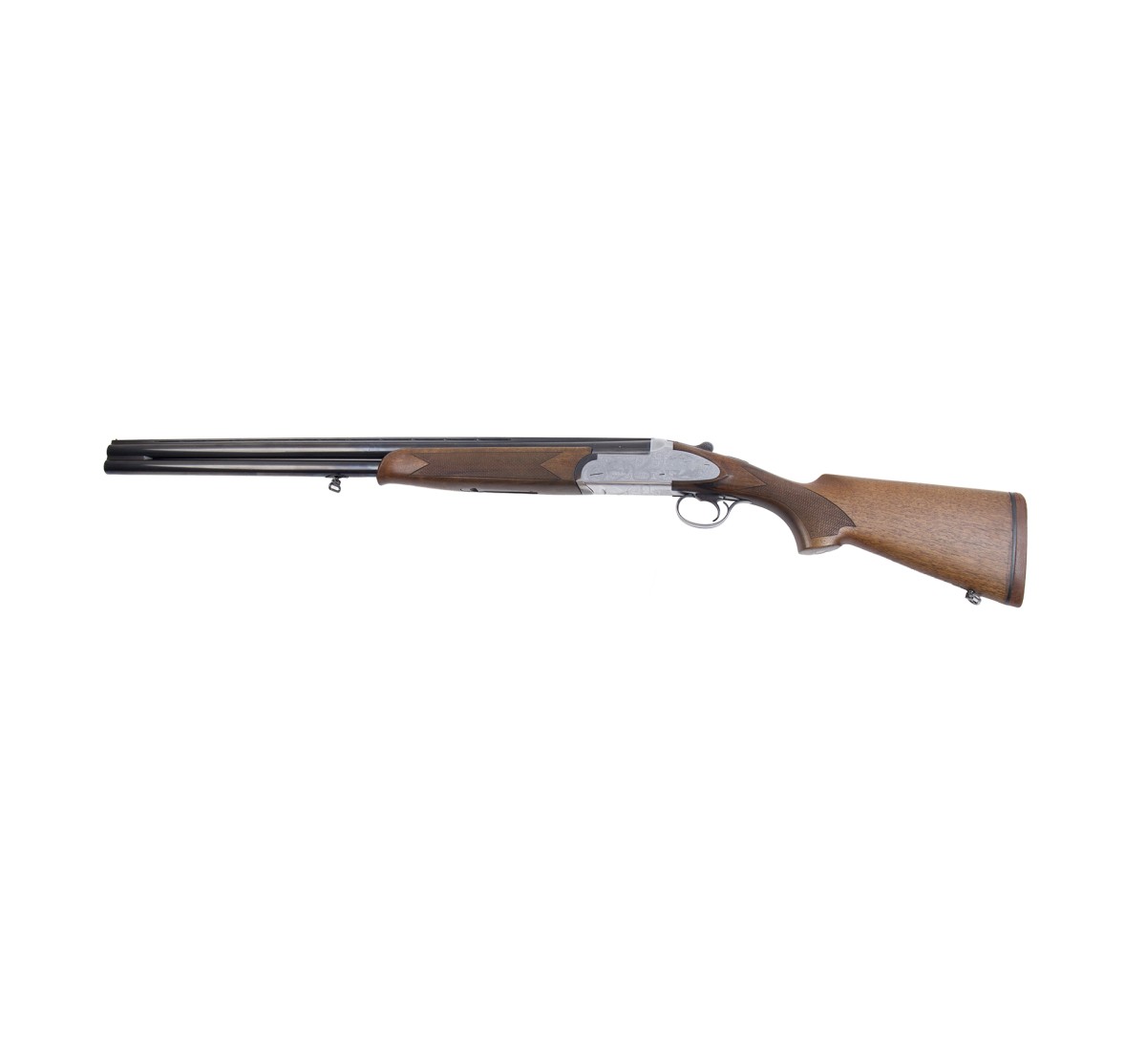 Fucile sovrapposto Antionio Zoli in ottime condizioni, canne a specchio e legni privi di segni d'usura. Questo fucile è leggero e ben bilanciato, impreziosito dagli estrattori automatici e dalle cartelle lunghe con incisioni raffiguranti anatre e motivi floreali.