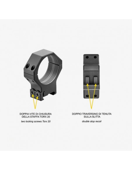 Machined from solid in all their parts, the light alloy LPR rings are ultra-strong and stable. Equipped with an integral double stop recoil and two locking screws Torx 20.