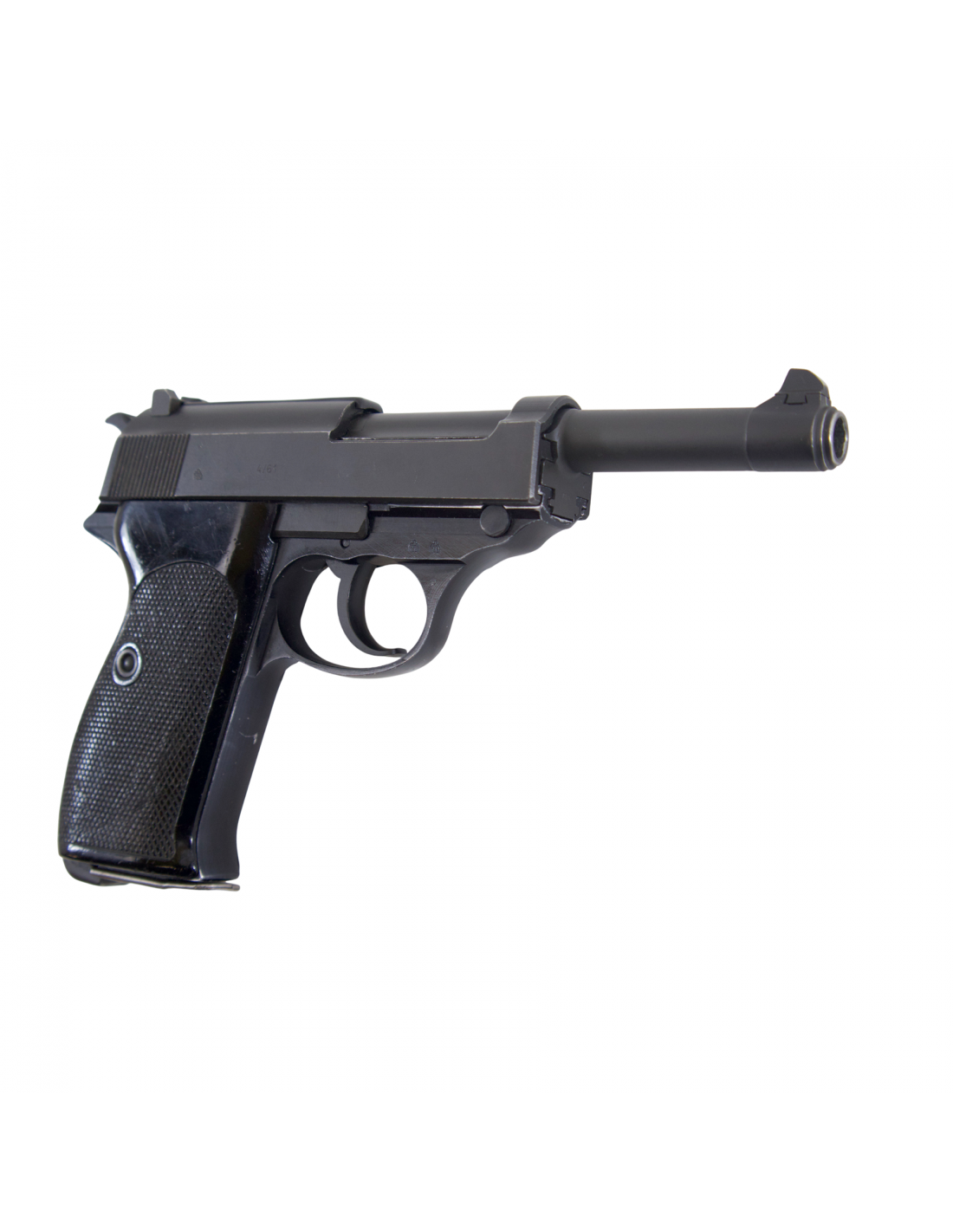 È un'arma monomatricola fusto/canna/carrello con finitura opaca parkerizzata (canna/carrello). Monta un carrello di 1° tipo e si presenta in ottime condizioni generali corredata di fondina originale. Si tratta una pistola ex ordinanza Bundeswehr prodotta a Ulm ad aprile del 1961. Il fusto è della versione antecedente al 1963, quindi reca la dicitura "P38" e non "P1". Prima serie P1.