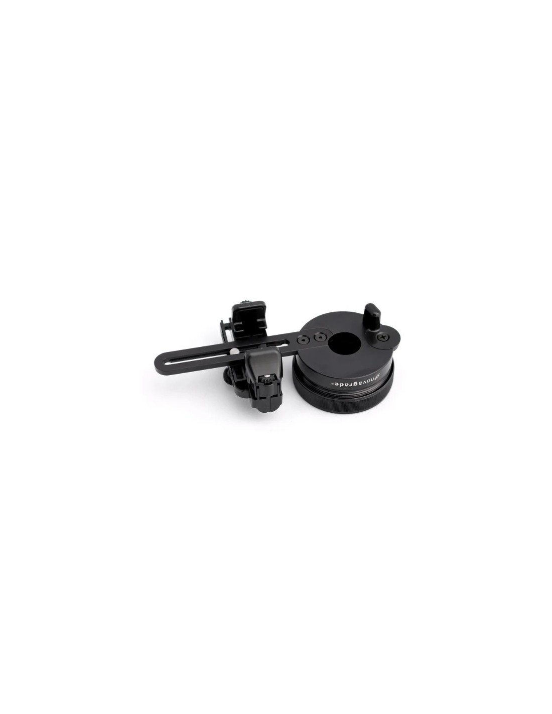 Accepts phone and mini-tablets up to 4-3/8” wide (110mm). Anodized aluminum construction and soft touch grippers that can be adjusted in any direction to ensure they do not interfere with buttons. Compression rings included for eyepieces from 39mm to 60.75mm in diameter.