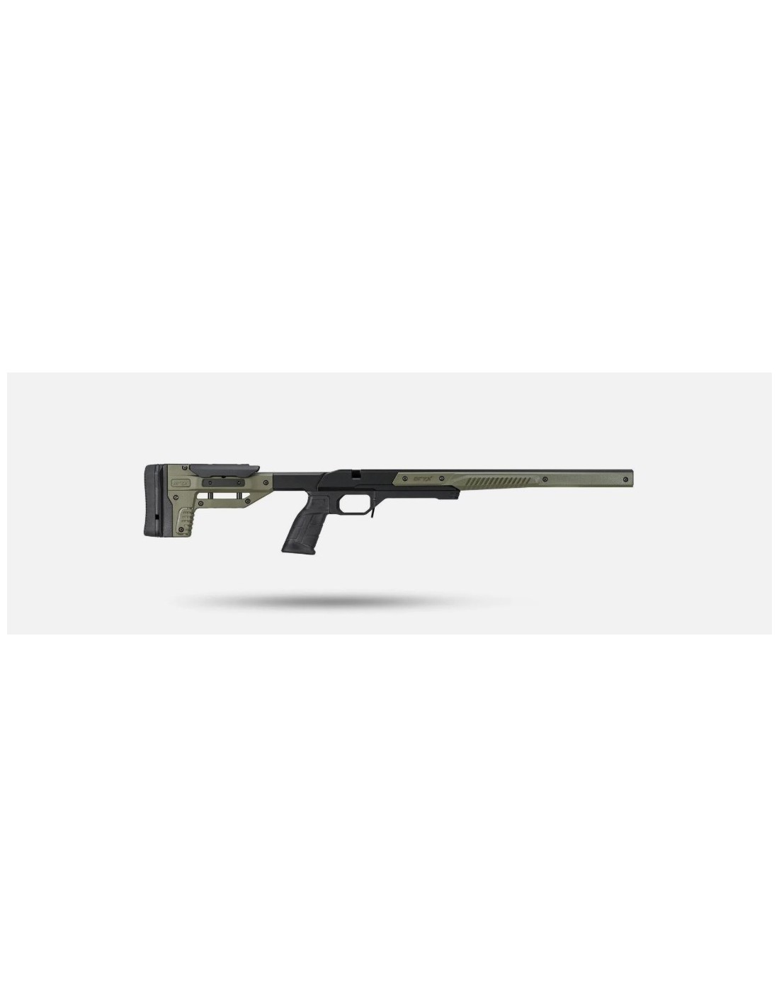 MDT ORYX Chassis System was designed to be the best all-around aftermarket stock replacement for people wanting to enhance their accuracy. It's designed for people that want to get into precision rifle shooting with factory rifles. The metal chassis was engineered to improve accuracy and ergonomics through adjustability. The action is bedded on an aluminum block, and the barrel is free floated. When you get behind this chassis and take up a sight picture you will feel a more solid connection between you and your rifle.