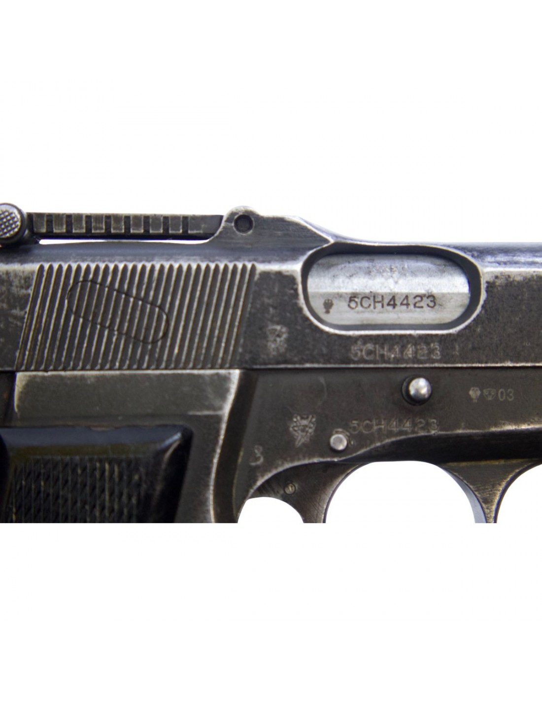 Rare Canadian Browning HP manufactured by Inglis, in the version known as the “Chinese contract”, produced between 1943 and 1945 for export to China. It features an adjustable rear sight and a stock attachment on the grip. This example was not actually exported due to the blockade imposed by Japan, which at the time occupied China, and was therefore delivered to the Canadian Army and used on the Western Front during the Second World War.