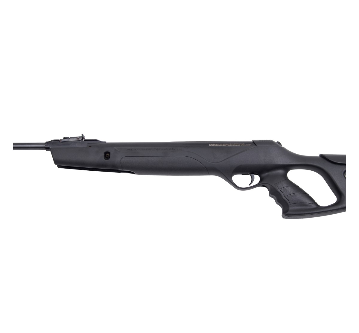 Carabina ad aria compressa con funzionamento a molla, dal look moderno con un confortevole calcio thumbhole in robusto polimero. È dotata di sicura posteriore.