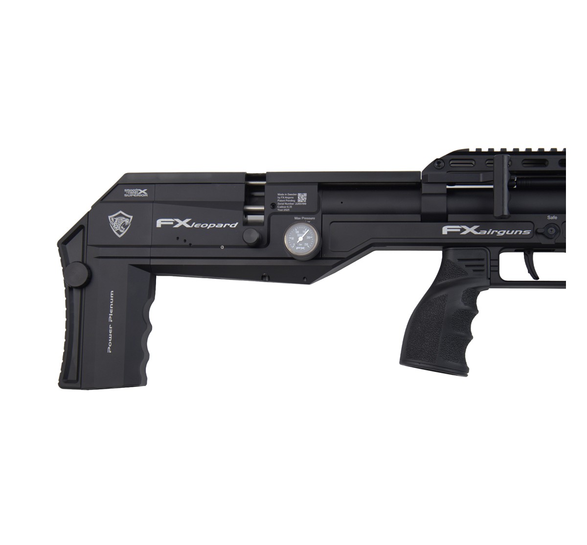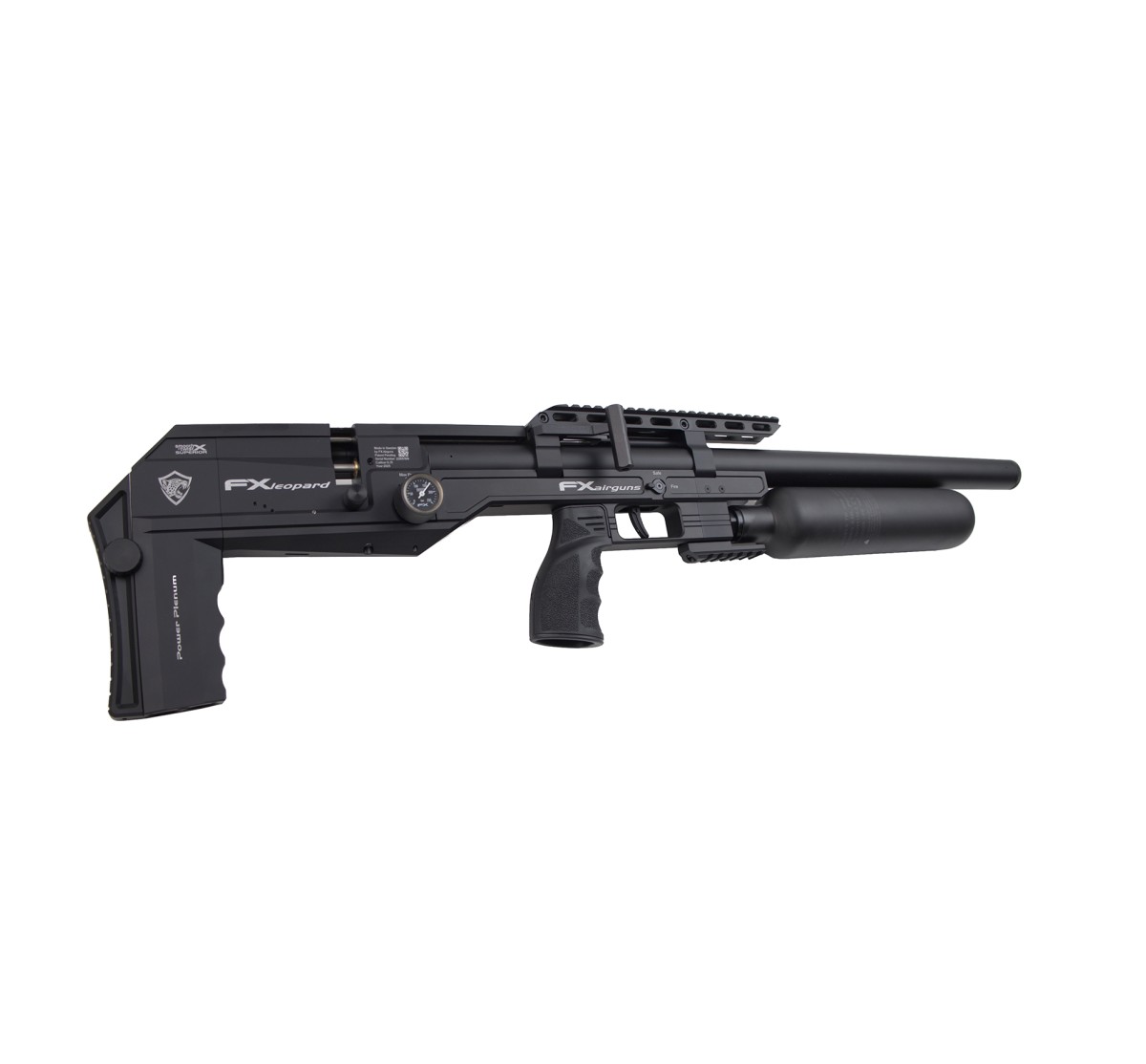 La FX Leopard è una carabina ad aria compressa bull-up che fonde insieme il meglio della tecnologia di FX Airguns in un'unica piattaforma compatta e ad alte prestazioni. Integra una slitta picatinny inclinata a 20 MOA e una bombola in fibra di carbonio con un utilizzo ottimizzato dell'arma sia ad alta che a bassa potenza (90 colpi sparando slug di 40 grani a 900 FPS).