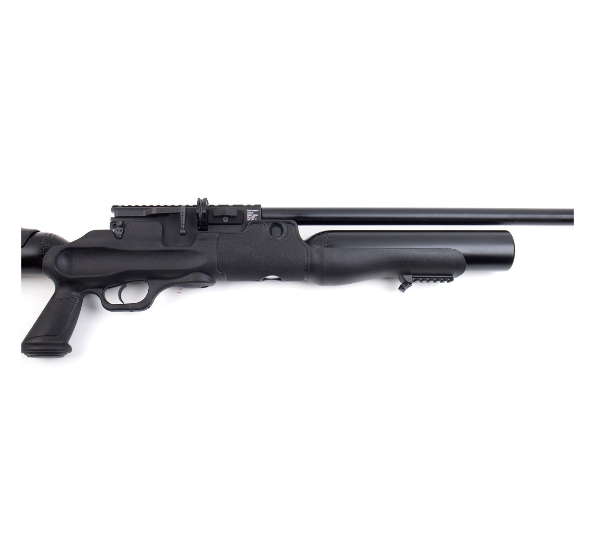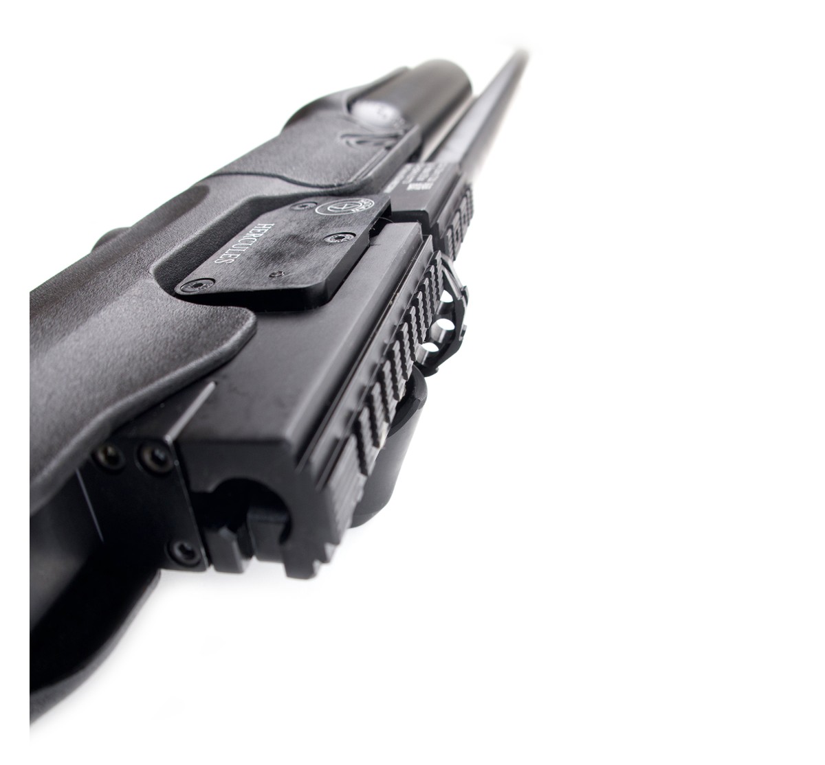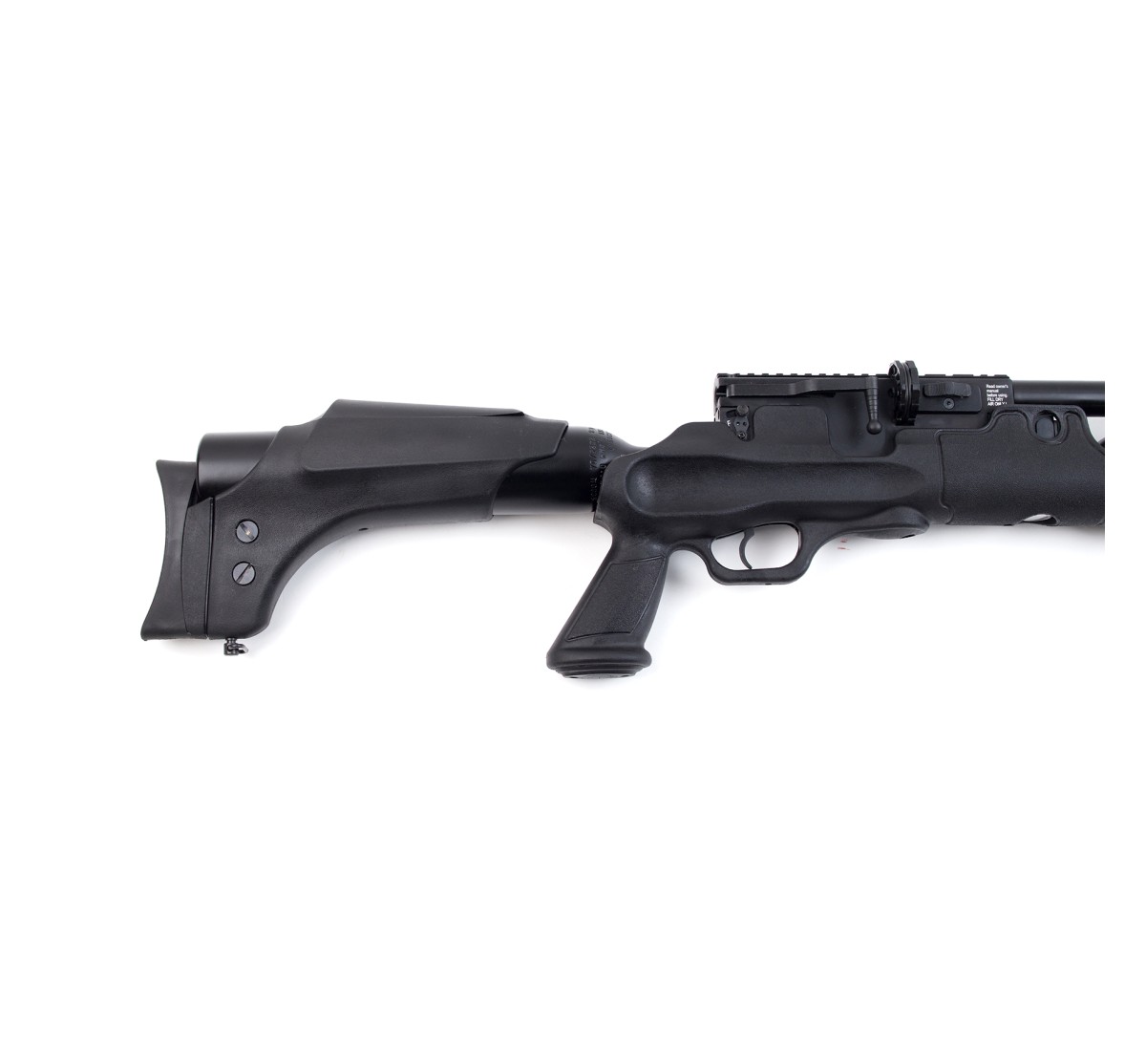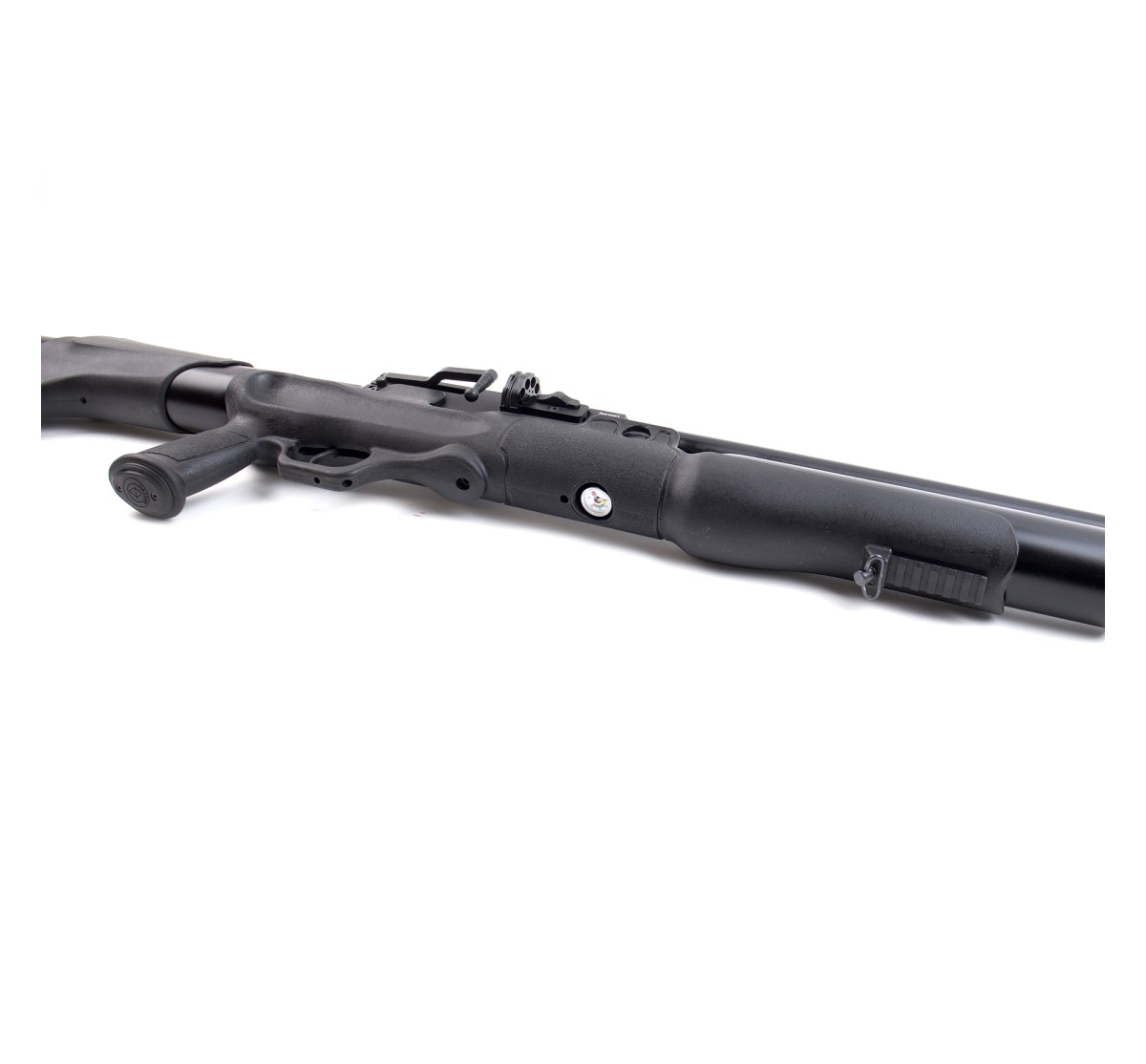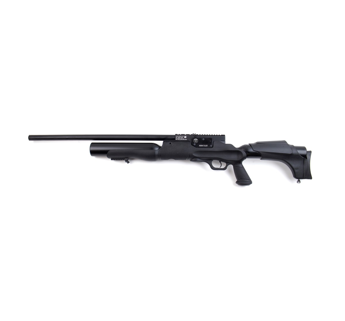 Carabina PCP a elevata potenza in calibro 7,62mm, con moderatore di rumore integrato (abbatte il suono del 50%). Scatto regolabile a doppio stadio, bombola da 500cc, slitta picatinny per il montaggio di ottiche e congegni di mira (da 11mm e 22mm), receiver in alluminio anodizzato, canna e serbatoio bruniti.