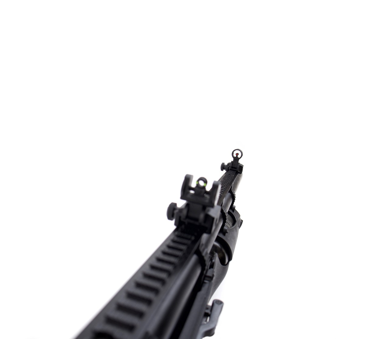 Mire: abbattibili flip-up, mirino in fibra ottica rossa