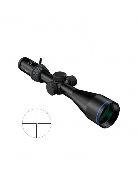 Reticolo: tipo 4C sul secondo piano focale (SFP), con punto rosso illuminato regolabile su fino a 7 livelli di luminosità e “half-click” tra ciascuna impostazione per spegnere il reticolo e risparmiare batteria