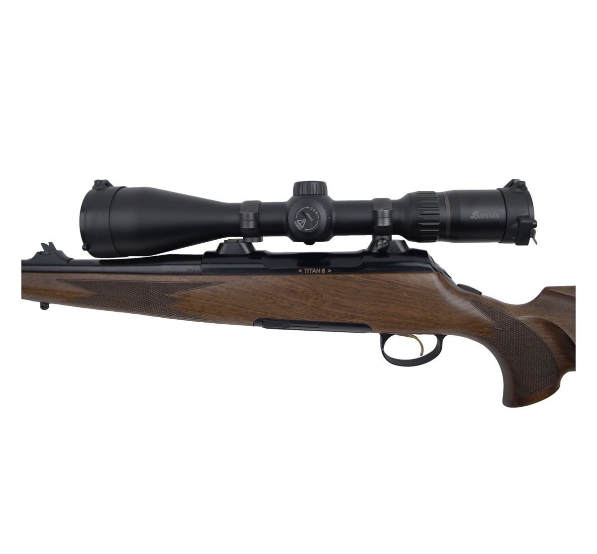 Si tratta di una carabina da caccia austriaca di pregevole fattura. La Titan 6 si caratterizza per il design dell'azione in ergal anodizzato, la canna intercambiabile, l'otturatore con 6 alette su due ranghi che chiudono nella culatta della canna. La canna è flottante con finitura nitrurata. L'esemplare proposto è in perfette condizioni ed è corredato di ottica Burris Four XE 3-12X56 nuova, con scatola.