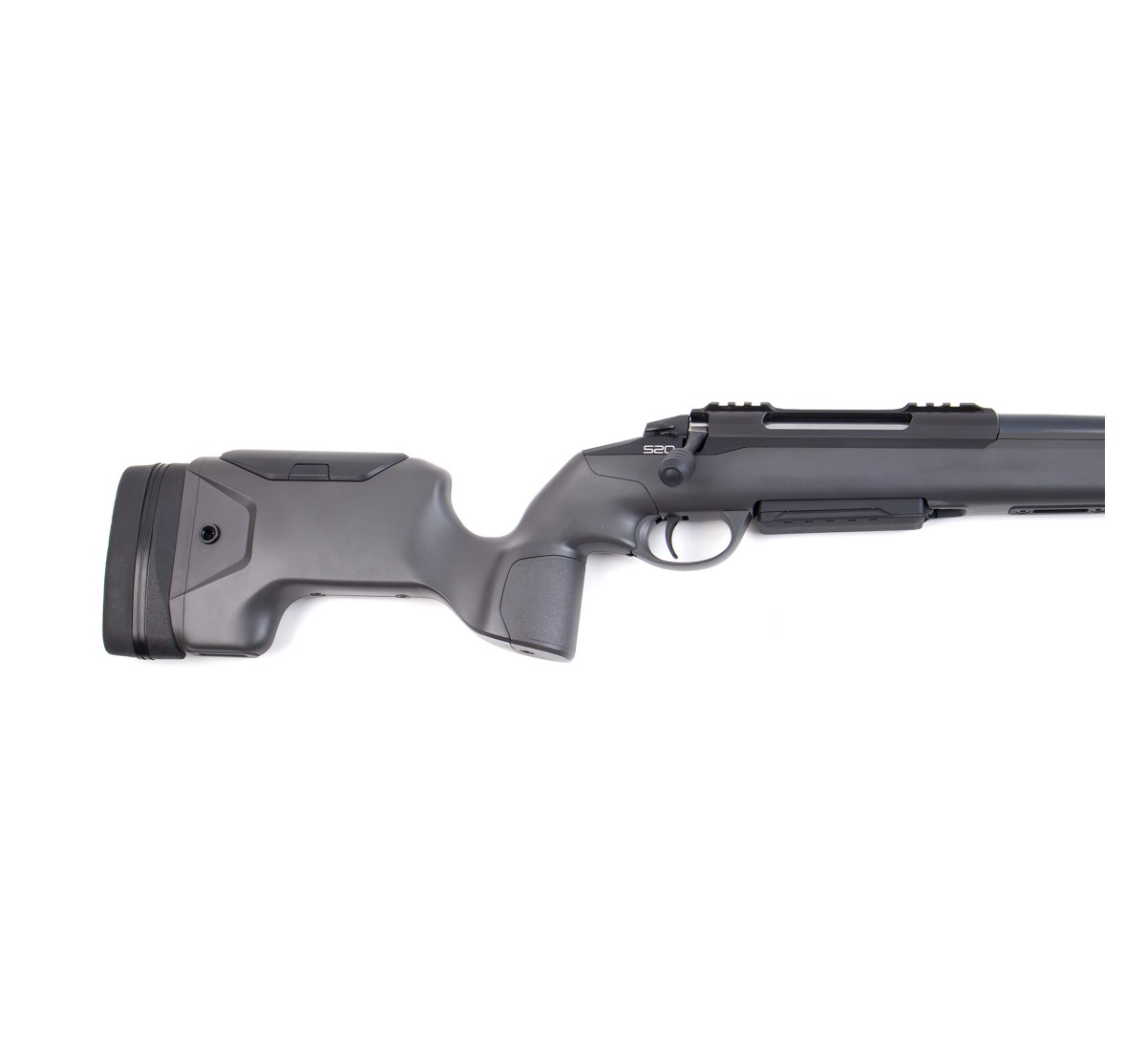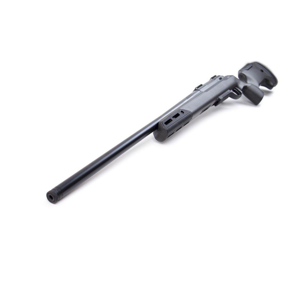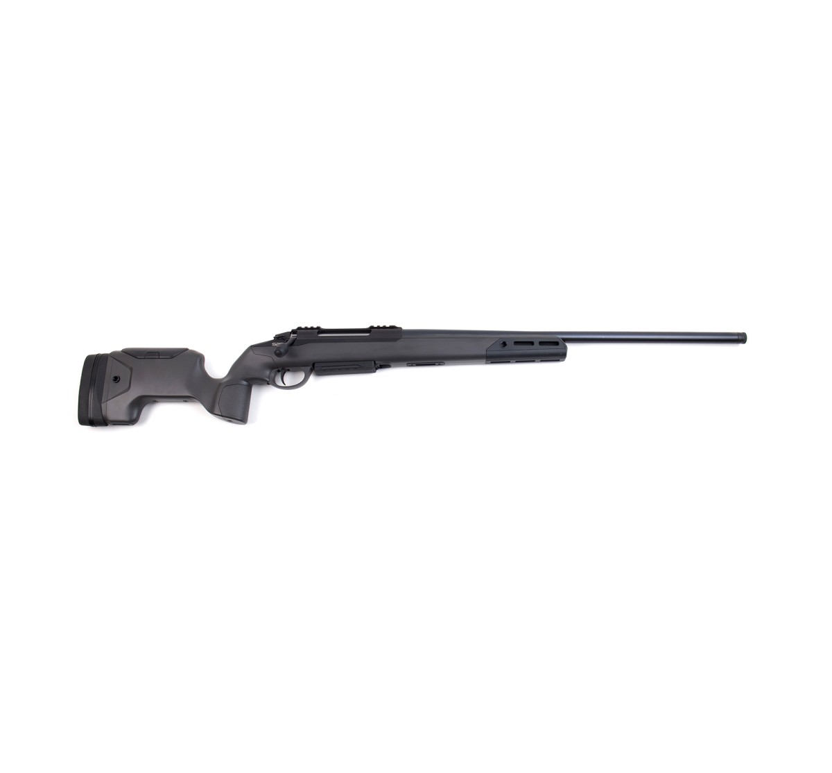 Carabina ibrida pensata sia per la caccia che per il tiro di precisione, con calciatura tattica, canna con finitura cerakote onyx gray, astina dal profilo piatto per il tiro in appoggio al poligono, poggiaguancia e calciolo regolabili. Otturatore e telaio sono ricavati dal pieno e lavorati in modo da ottenere una grande scorrevolezza. Il meccanismo di rotazione e chiusura è molto dolce, grazie alla particolare inclinazione dei piani di scorrimento.