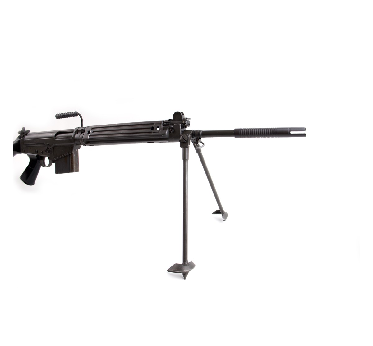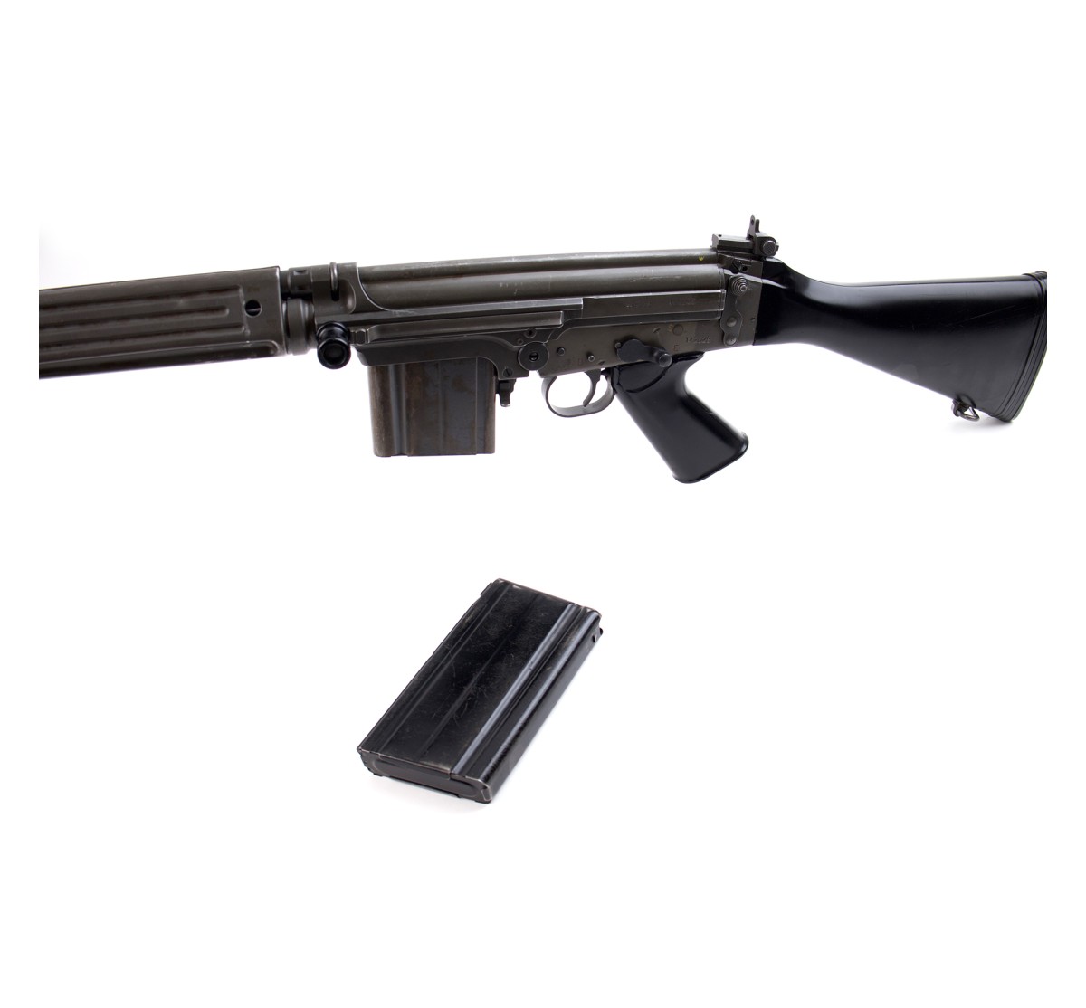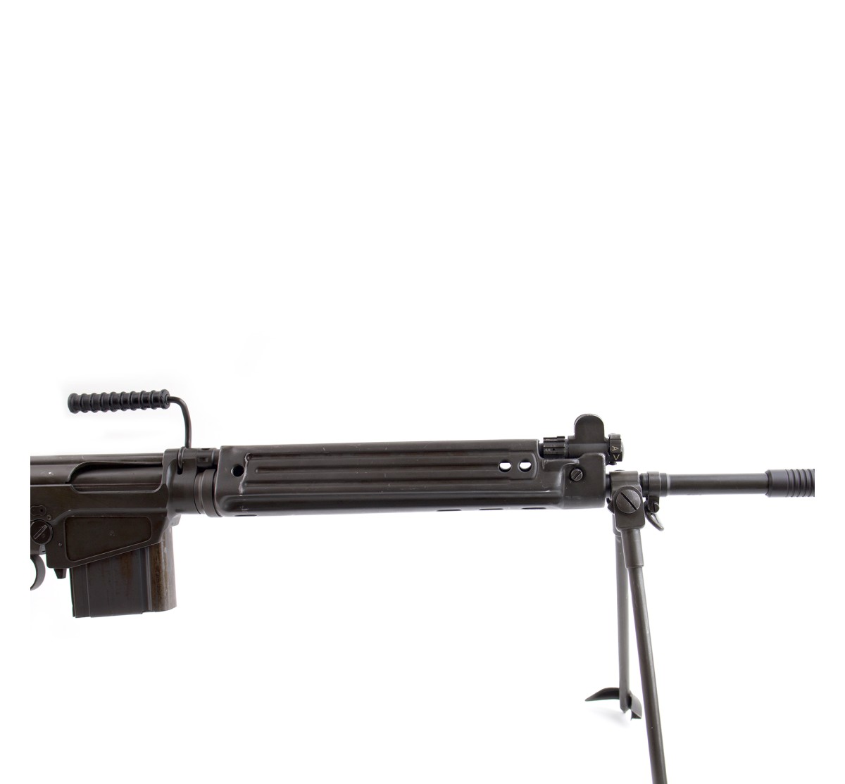 Lo Steyr STG 58, noto come "il FAL austriaco", è stato prodotto in Austria tra il 1958 e il 1980 su licenza della FN ed è stato un'arma di ordinanza dell'esercito austriaco. Questo esemplare è demilitarizzato, si caratterizza per il tipico spegnifiamma con funzione trincia fili e lanciagranate, la valvola per la regolazione del gas di recupero e una seconda valvola per impedire il riarmo (serviva per il lancio delle granate). L'arma presenta anche il tipico bipiede collassabile dei FAL austriaci. L'arma è corredata di 2 caricatori, uno da 10 e uno da 20 colpi.