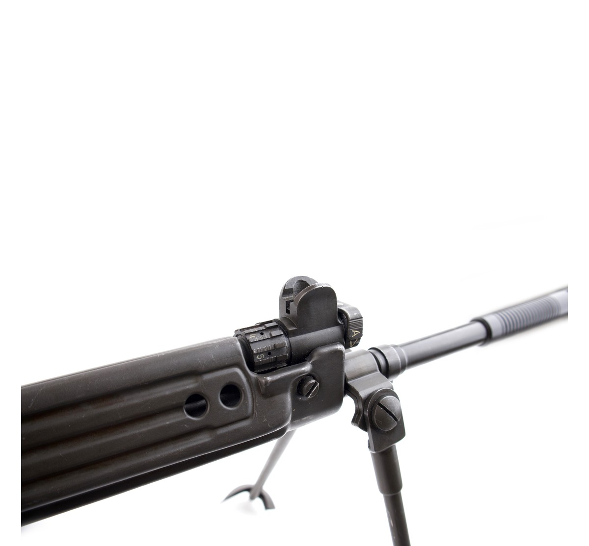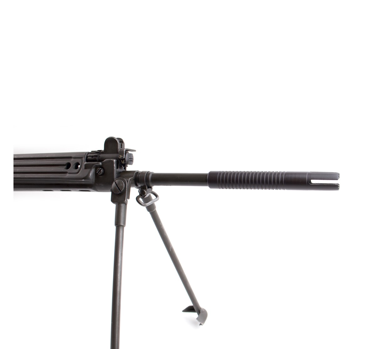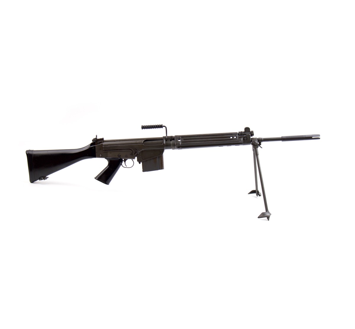 Lo Steyr STG 58, noto come "il FAL austriaco", è stato prodotto in Austria tra il 1958 e il 1980 su licenza della FN ed è stato un'arma di ordinanza dell'esercito austriaco. Questo esemplare è demilitarizzato, si caratterizza per il tipico spegnifiamma con funzione trincia fili e lanciagranate, la valvola per la regolazione del gas di recupero e una seconda valvola per impedire il riarmo (serviva per il lancio delle granate). L'arma presenta anche il tipico bipiede collassabile dei FAL austriaci. L'arma è corredata di 2 caricatori, uno da 10 e uno da 20 colpi.