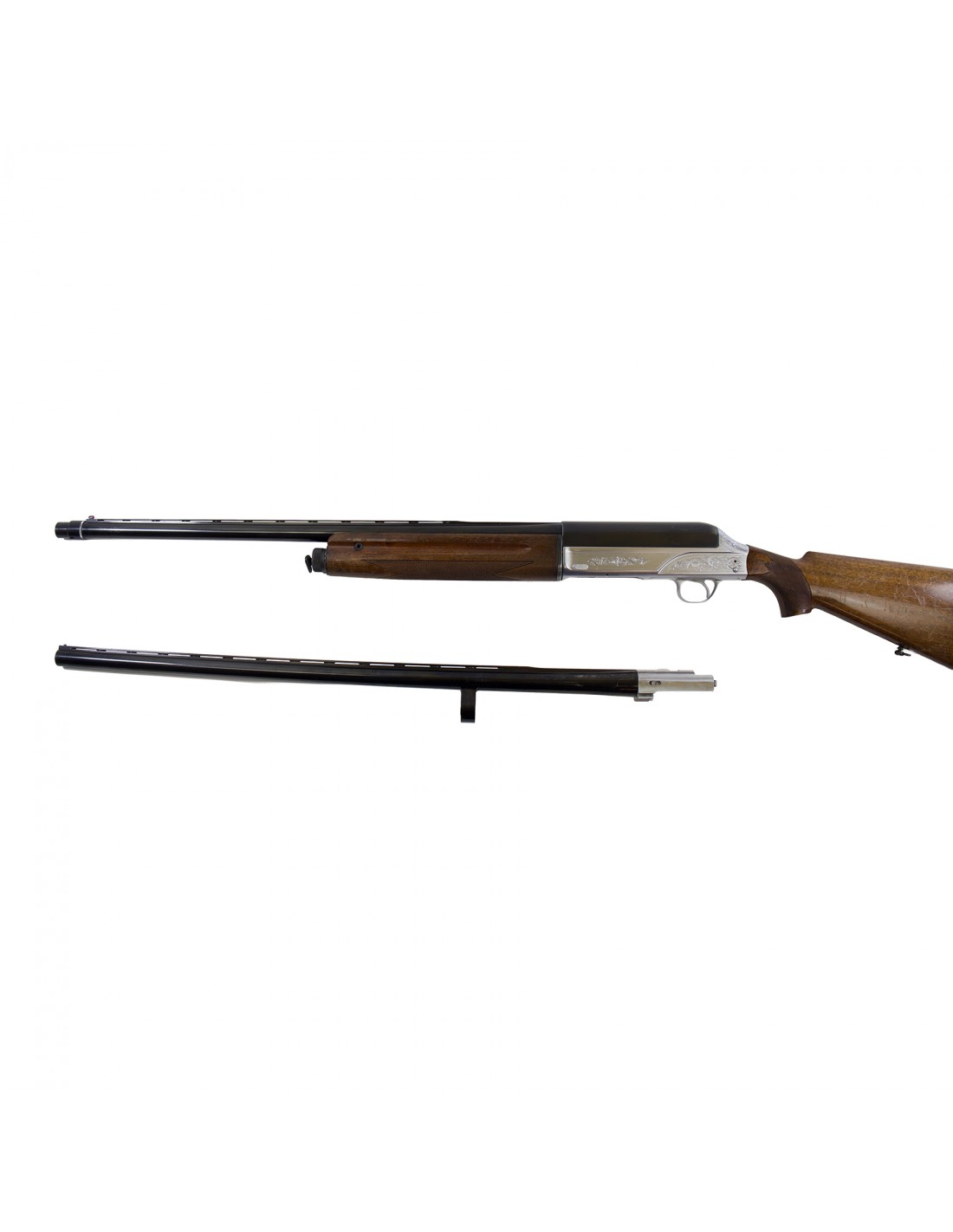 Questo esemplare monta le celebri canne Breda, ottenute da un unico blocco. Sono comprese con il fucile 2 ottime canne, una da 60cm con sistema QuickChoke (strozzatura ****) e una canna da 70cm con mirino a perla (strozzatura **). Sul fusto sono realizzate a mano incisioni floreali. L'arma si presenta in buone condizioni generali, con normali segni d'usura sull'astina e la pala del calcio.