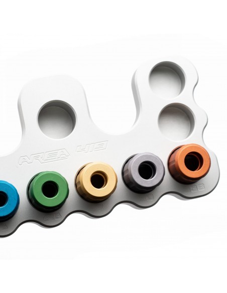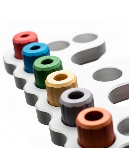 (6) Teste con codice colore specifico per calibro (22 cal, 6mm/243, 6.5mm/264, 7mm/284, 30 cal, 338 cal)