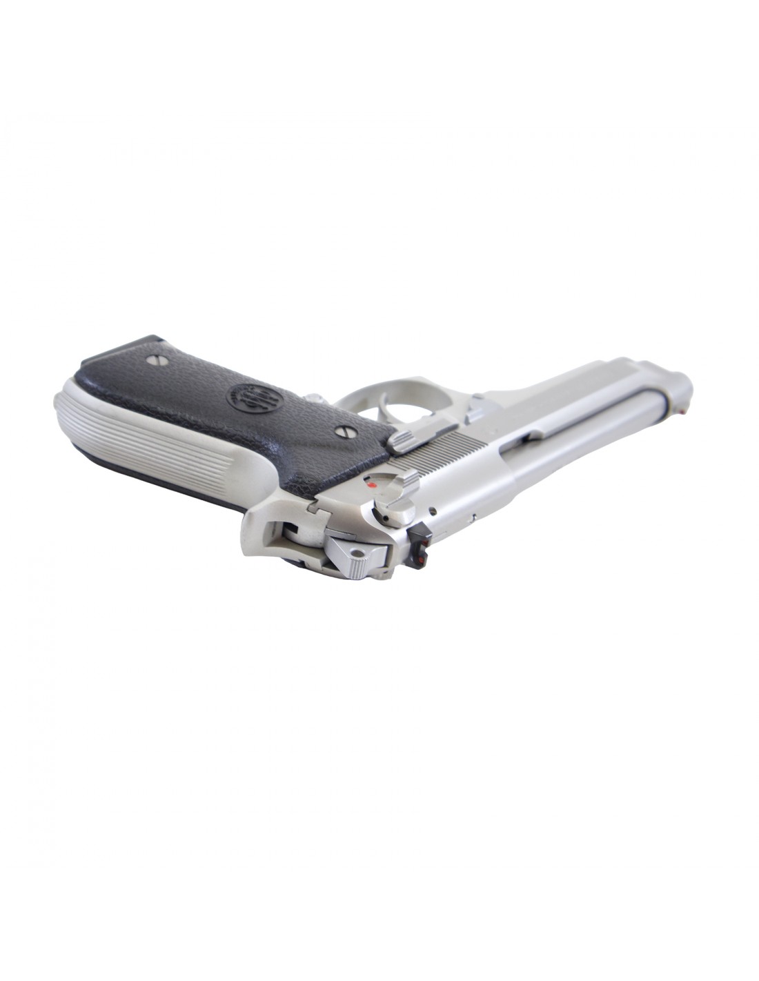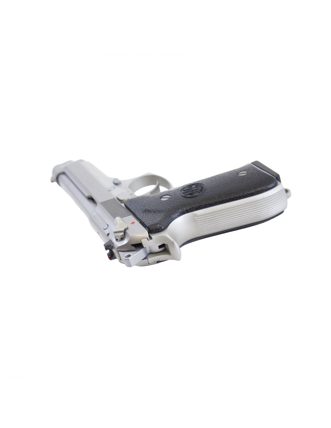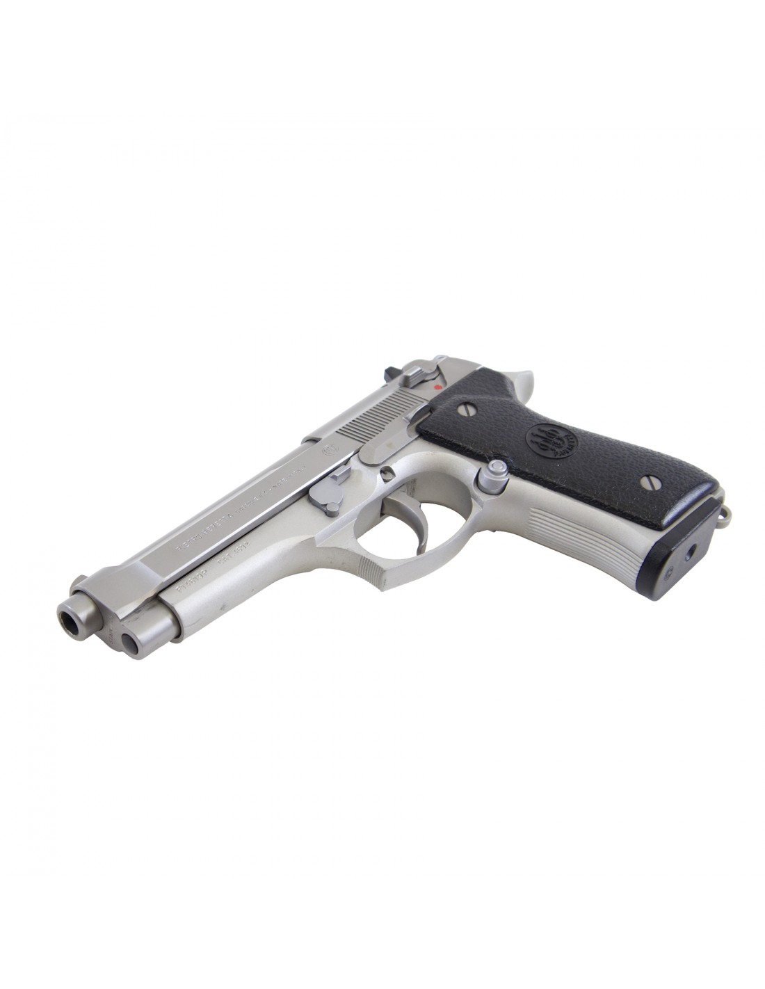 Si tratta di una pistola Beretta 98 FS in versione inox, con guancette in gomma. Non presenta ne segni di porto ne di usura. È corredata di valigetta originale Beretta, scovolo per la pulizia e secondo caricatore da 15 colpi.