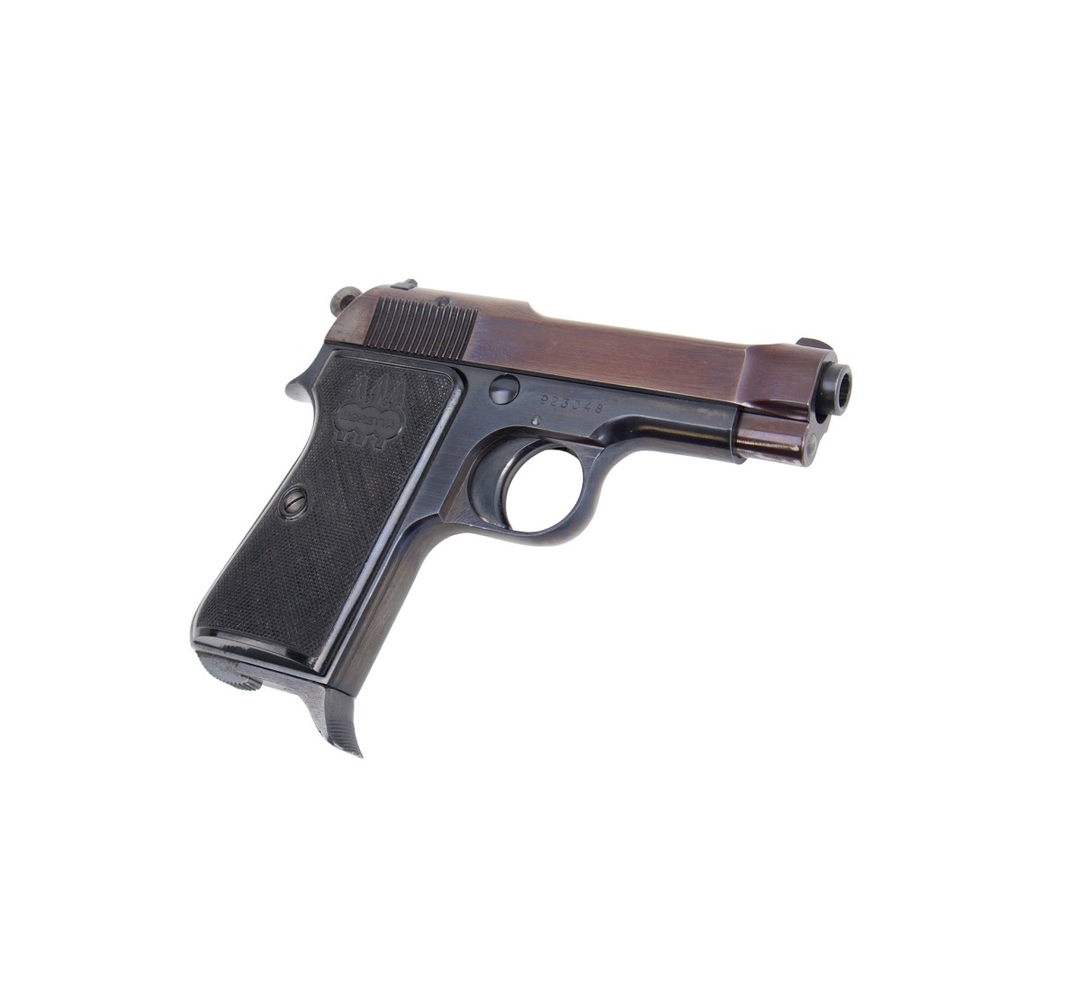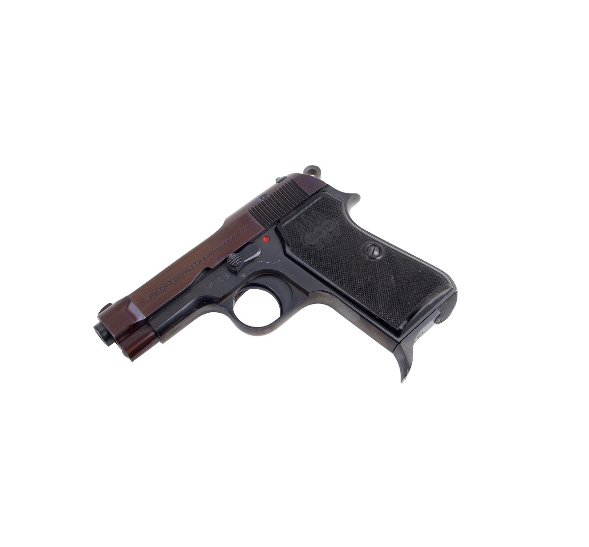 Beretta M35, versione in calibro 7,65mm Browning della sorella maggiore M34 in 9 Short (9x17mm), qui proposta in una delle più recenti produzioni, bancata 1972. Le condizioni sono perfette, l'arma proviene da una collezione ed è priva di segni di usura, con la sua brunitura originale oltre il 90%. Perfetta per collezione, sorprendentemente precisa nel tiro al poligono.