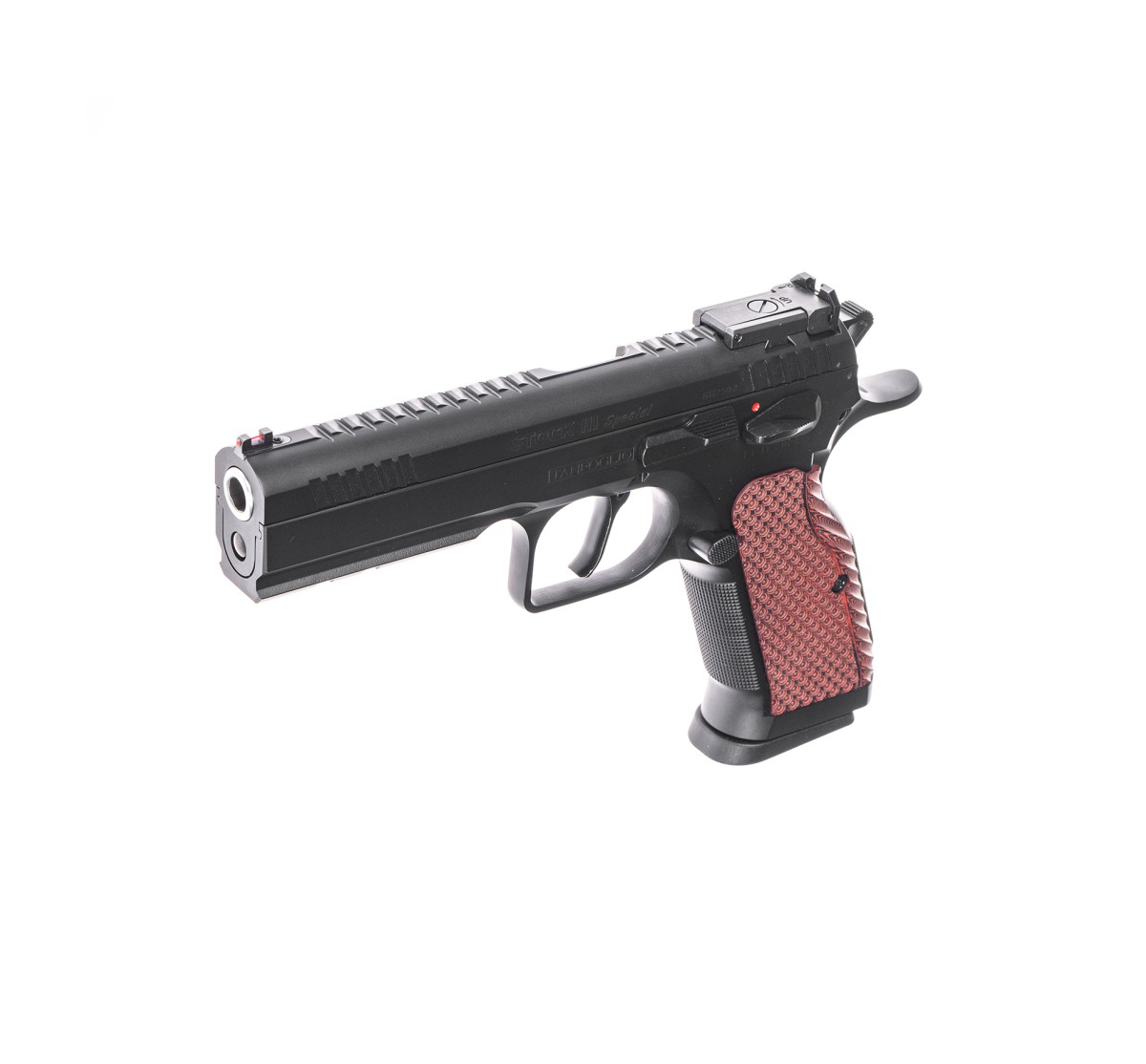 La Tanfoglio Stock III Special è un'arma sportiva pronto gare progettata per competere nella divisione IPSC Production. È un'arma pensata per fornire tanta qualità e prestazioni senza compromessi. Adotta un nuovo grilletto Next a doppia azione dritto, tacca di mira regolabile Supersight smussata e guancette in G10. È corredata di valigetta con 2 caricatori da 17 colpi e scovolo per la pulizia. Borsone 2 in 1 (BTA) in omaggio.