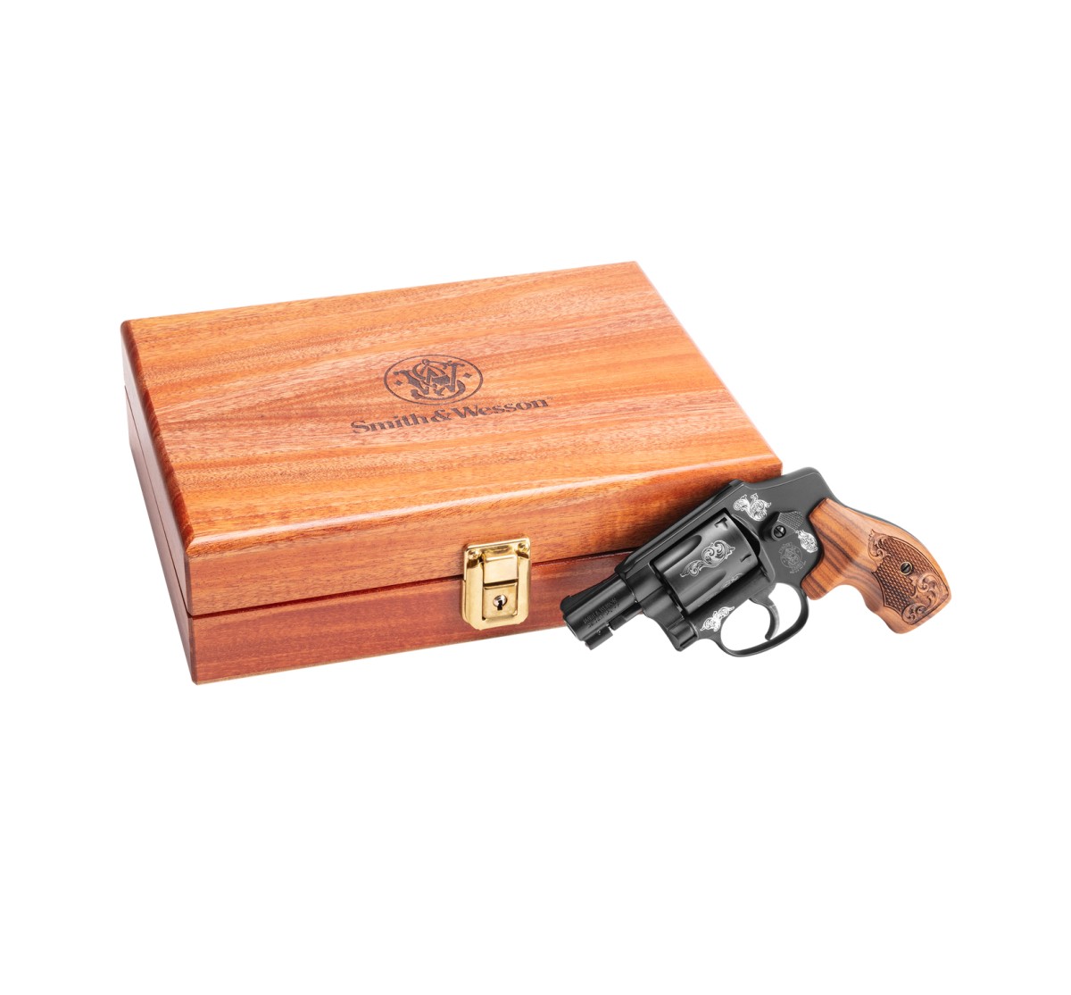 Il modello 442 è l'ultima innovazione del modello 42 Centennial Airweight, un revolver in lega di alluminio leggera con cane completamente nascosto. Impreziosito da incisioni realizzate con punta di diamante su telaio e tamburo, il modello 442 integra le caratteristiche collaudate dell'originale con i moderni progressi. La canna e il tamburo sono in acciaio al carbonio. L'arma è corredata di uno splendido cofanetto in mogano con telaio in lega leggera per un facile trasporto.