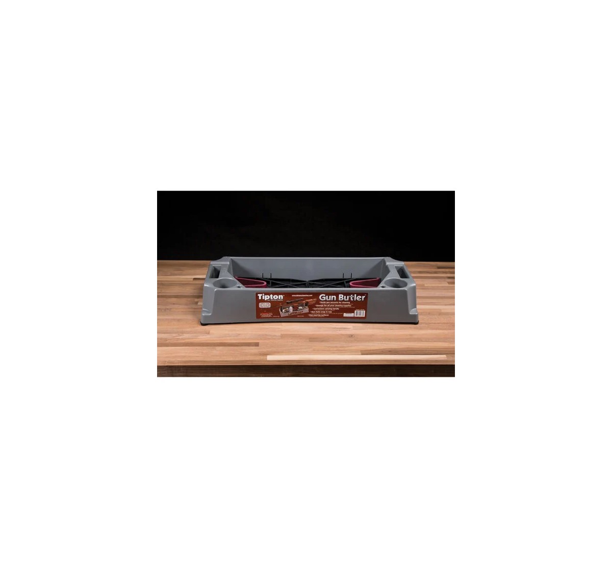 Il Tipton Gun Butler è un supporto universale progettato per facilitare la pulizia, la manutenzione e le operazioni di controllo su armi lunghe e corte. Compatto, leggero e funzionale, rappresenta una soluzione pratica per banco da lavoro, laboratorio o utilizzo domestico.